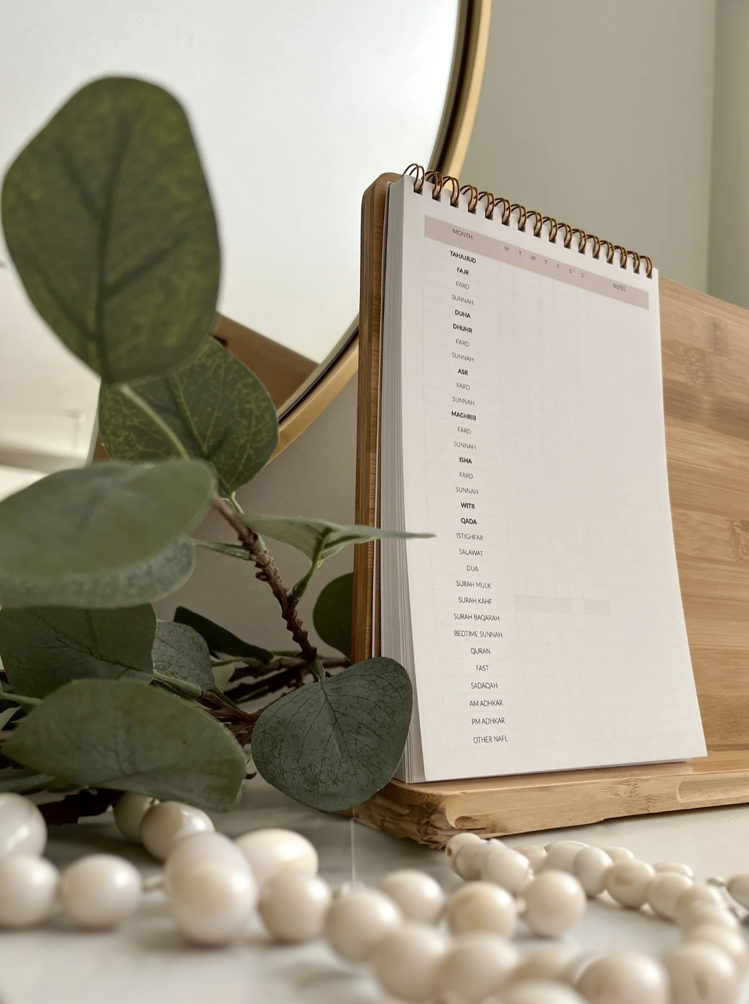 Crafted to blend seamlessly into your space, our Ibadah Tracker Notepad serves as a gentle reminder to stay focused on your spiritual goals, visible and accessible whenever you need it.