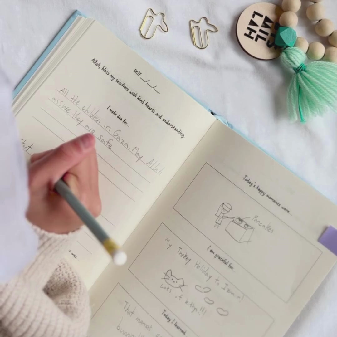 What does the dua mean to them? What thoughts, words and images come up for them? Guide them through the gratitude, learning and daily reflection prompts.