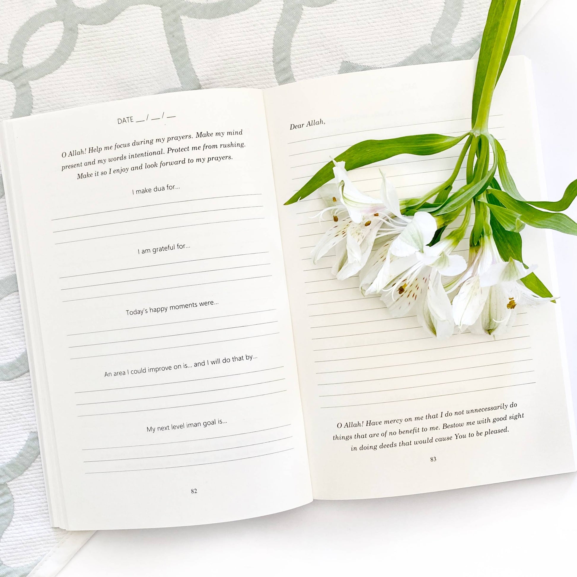 I am the type of person that is so much better able to communicate my feelings via writing. I use the dua journal usually before bed, and not only does it help me remember the good that happened throughout the day and be more grateful, but it also helps me to clear my mind and my heart. The "Dear Allah" is my favorite section. I think of it like writing a letter to Allah and no matter what worries I have I always feel better after writing to Him. Jazak Allah khair for helping me to bring more du'a and gratitude into my life! – CHELSEA P
