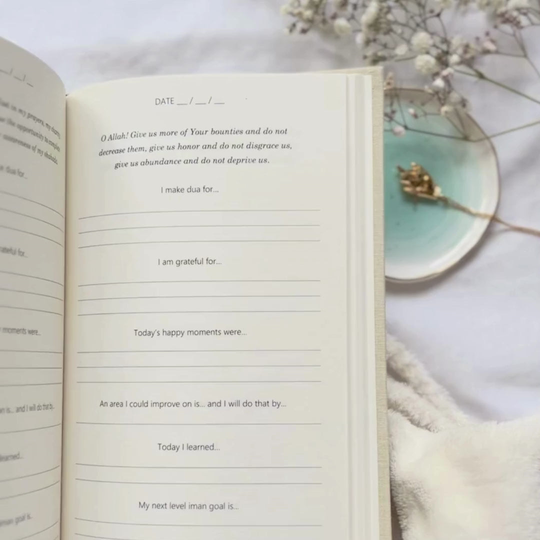 The original Dua Journal is a daily reflection journal tailored just for you, blending guided reflection with the flexibility to fit your unique schedule and individual needs. Here, you can jot down your gratitudes, pour out your heart in duas, and set your daily goals. It's like a cozy corner to contemplate, clear the clutter in your head and heart, and have that intimate conversation with Allah everyday.