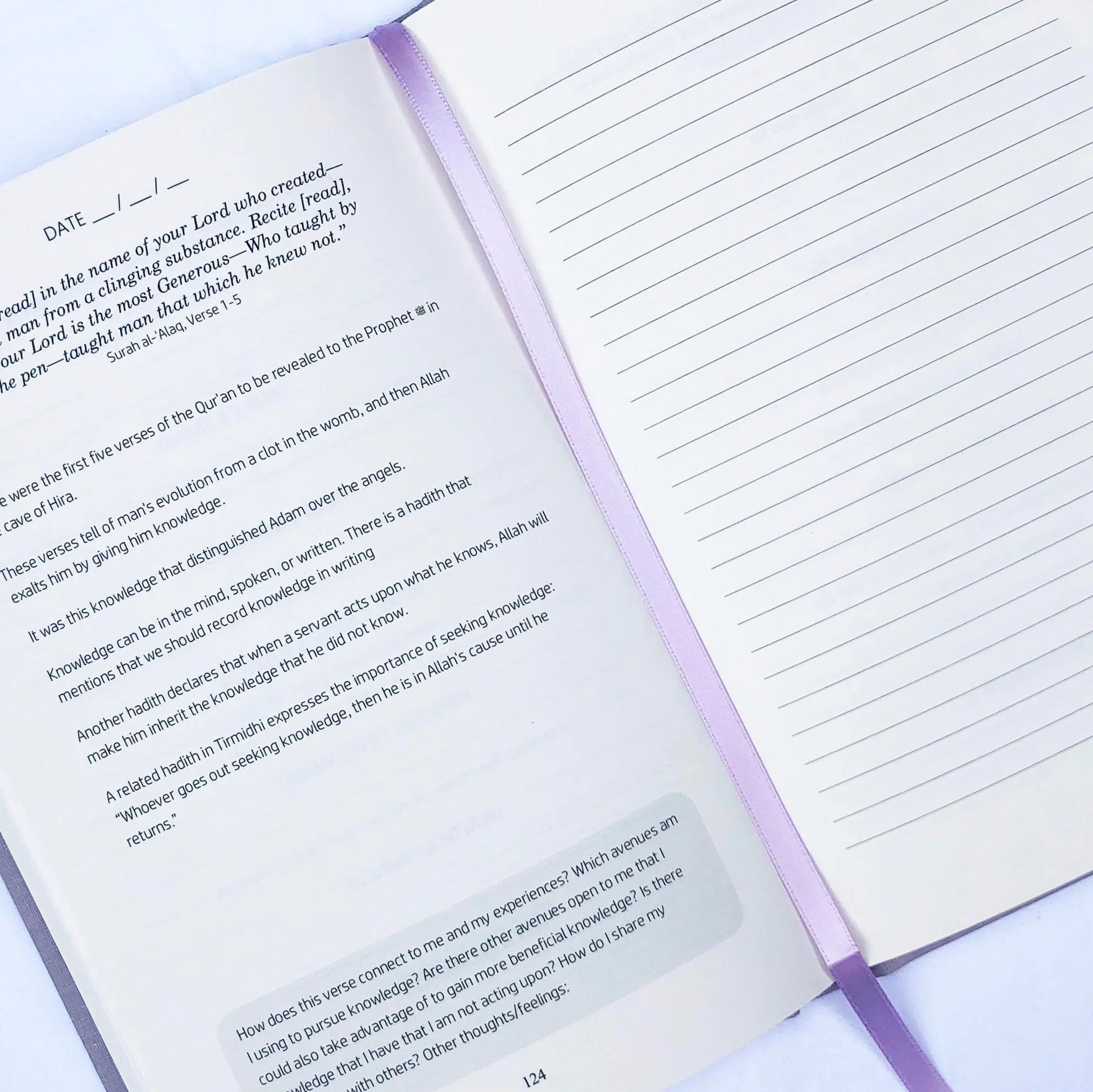 Each Quran Reflection page comes with a short verse, tafsir and guided questions to learn and reflect upon. A blank page that follows provides you with ample space to jot down your innermost thoughts and reflections, so you can be present with Allah and draw closer to Him.