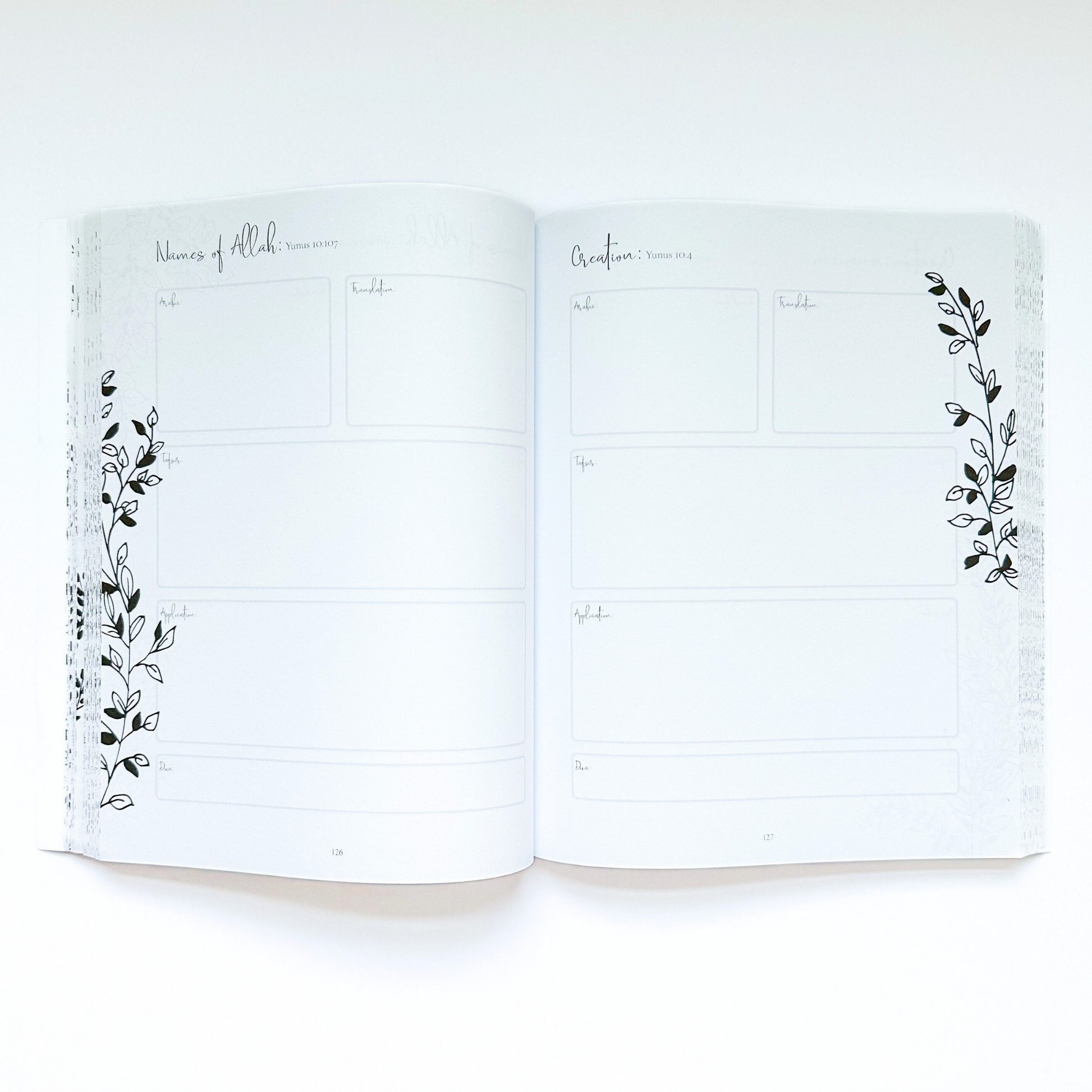 I had it sitting on my shelf for some time, until I turned back to it one day, and I haven't stopped journaling ever since, Alhumdulilah.I love the structure, it helps me focus on a specific verse and reflect. Through practice my Arabic writing has also improved. I love the applications and dua sections, this is where you can really reflect and implement the verse in your life.I have brought many copies to distribute to family and friends after using it myself. May Allah swt make it a means of gaining a deeper understanding of His words, an opportunity to allow us to reconnect and reflect, in sha Allah. Ameen.